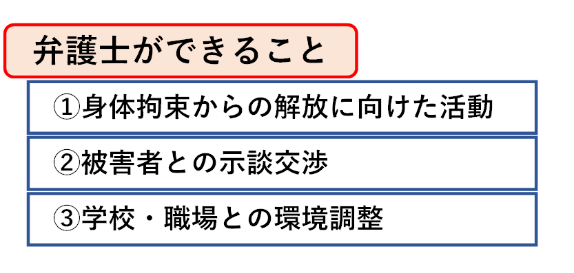 弁護人は、そもそも学校や会社に逮捕の事実を知られないよう、早期の解放を目指したり、事件が発覚した場合でも重い処分を下さないよう働きかけたりする活動を行います。
