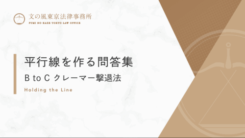お役立ち資料 (文の風メソッド) 悪質なクレーム・カスタマーハラスメントと戦う手法やノウハウなど、弊事務所の知見と経験を基にした資料を提供しています。 『平行線を作る問答集~BtoCクレーマー撃退法』 顧客等よりハードク […]